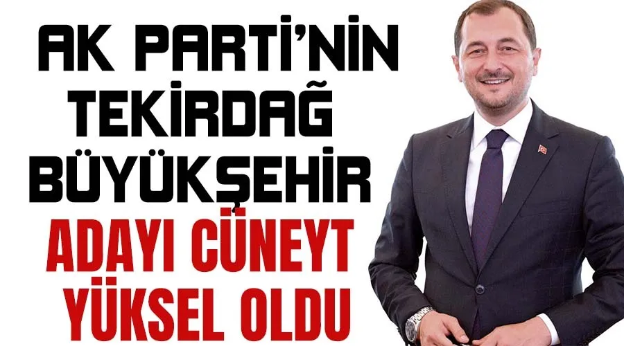 AK Parti, 31 Mart’ta yapılacak olan seçimler Tekirdağ Büyükşehir Belediye Başkan Adayını açıkladı. AK Parti’nin adayı 2019 seçimlerinde Süleymanpaşa Belediye Başkanı seçilen ve geçtiğimiz yıl Haziran ayında genel merkezin talimatıyla istifa eden Cüneyt Yüksel oldu.